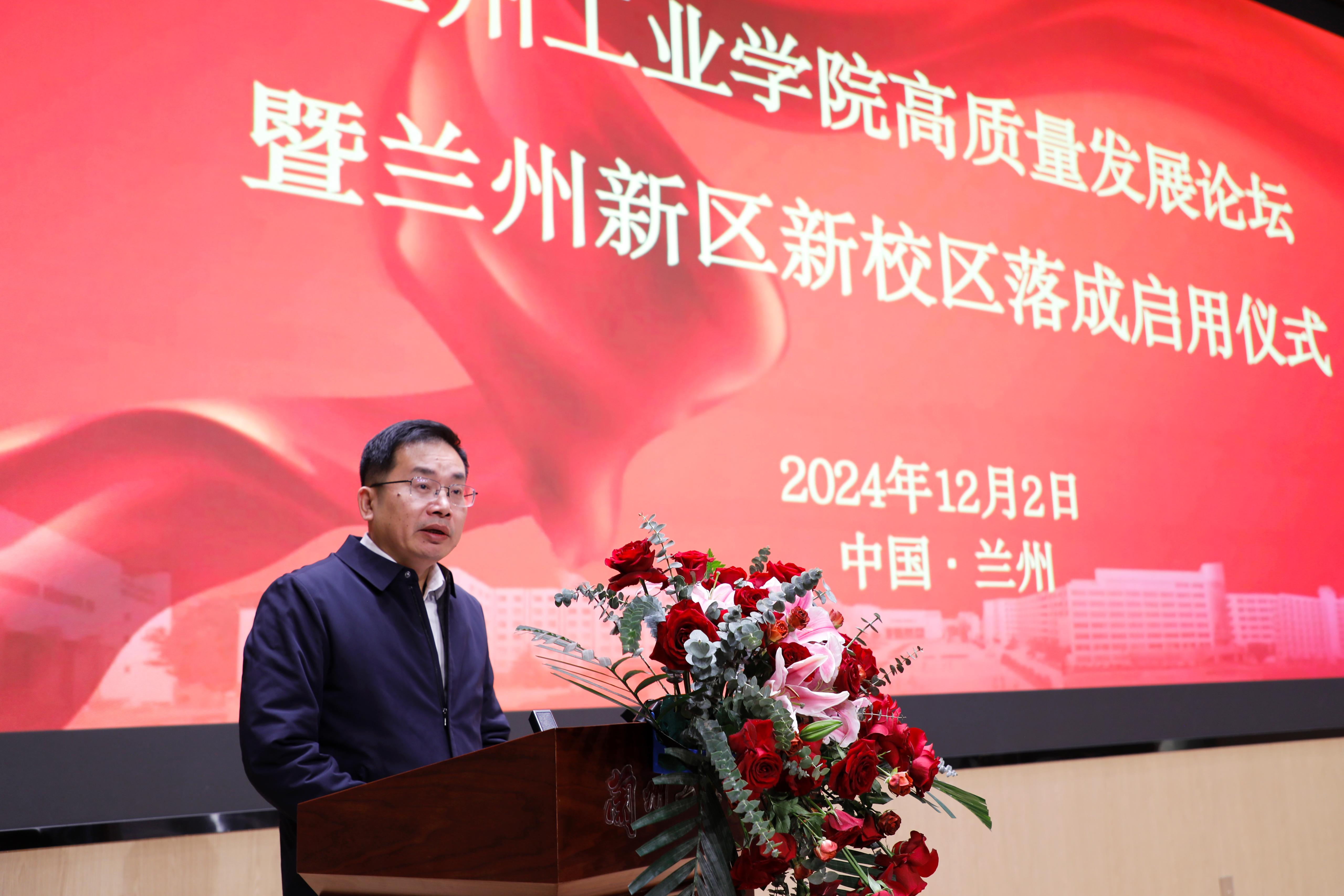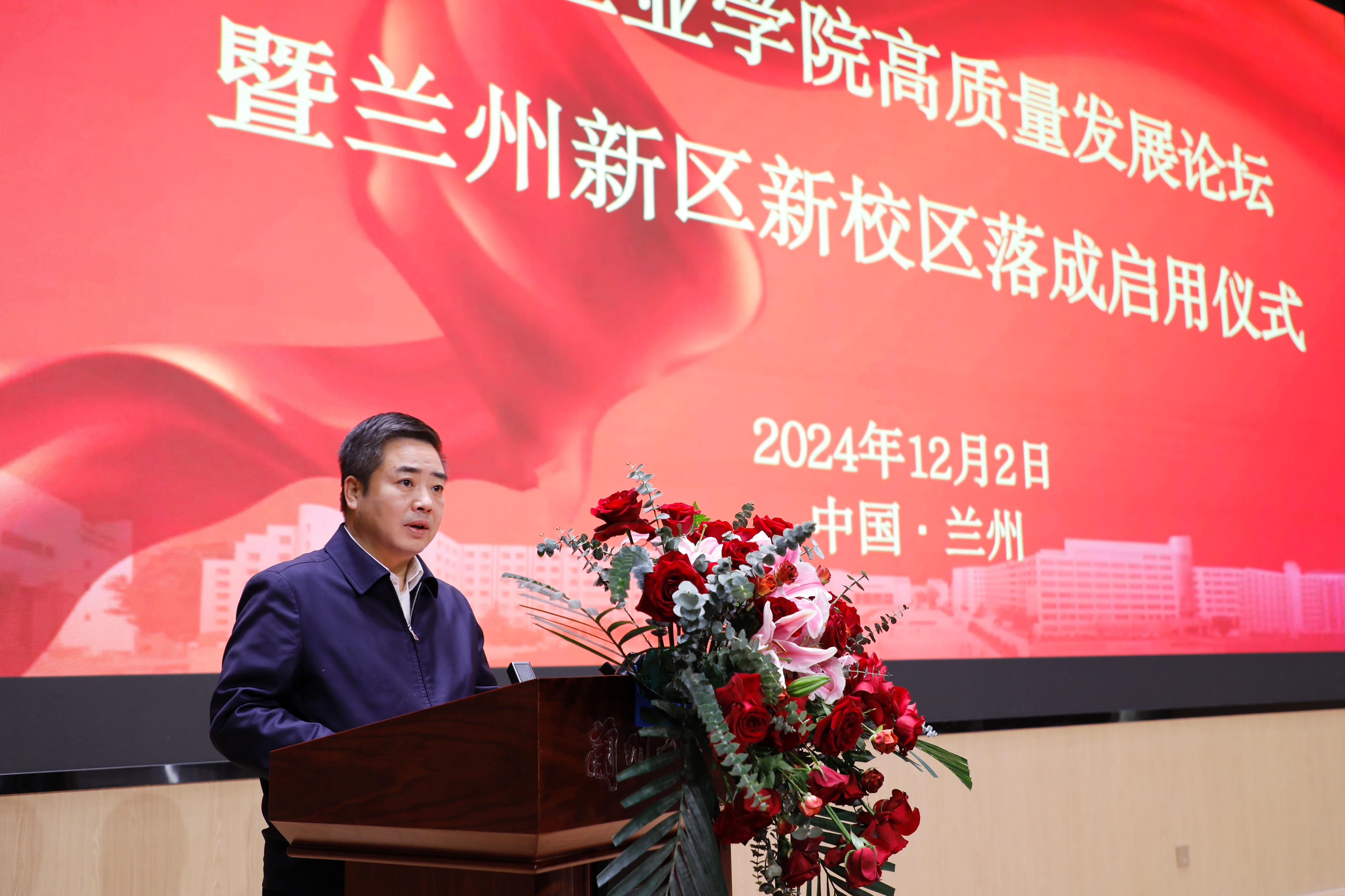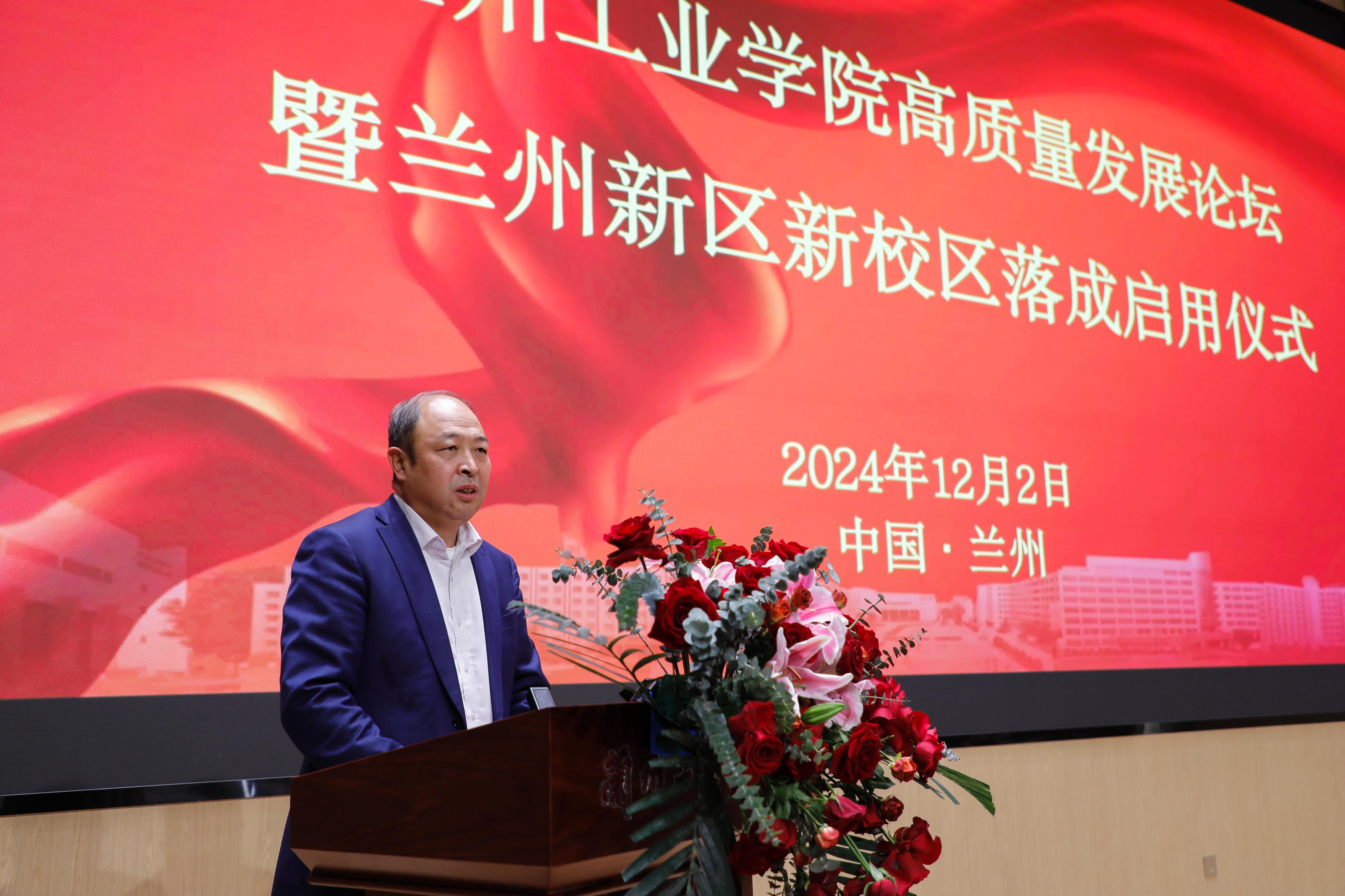 左龙从兰州新区教育事业高质量发展等多个维度对学校兰州新区新校区落成启用给予高度肯定和赞扬。他指出,兰州新区将着眼长远发展,着力推动职业教育产教融合,以政校协同推进专业、产业、就业、创业“四业”联动,大力实施职业教育服务产业发展专项攻坚行动,促推优势产业企业与院校合作开办产业学院、专业订单班,院校、科研院所与龙头企业共建科创中心、孵化中心,以高水平教育支撑经济社会高质量发展。将进一步深化与兰州工业学院的合作交流,强化协同发展,共同书写区校融合崭新篇章。