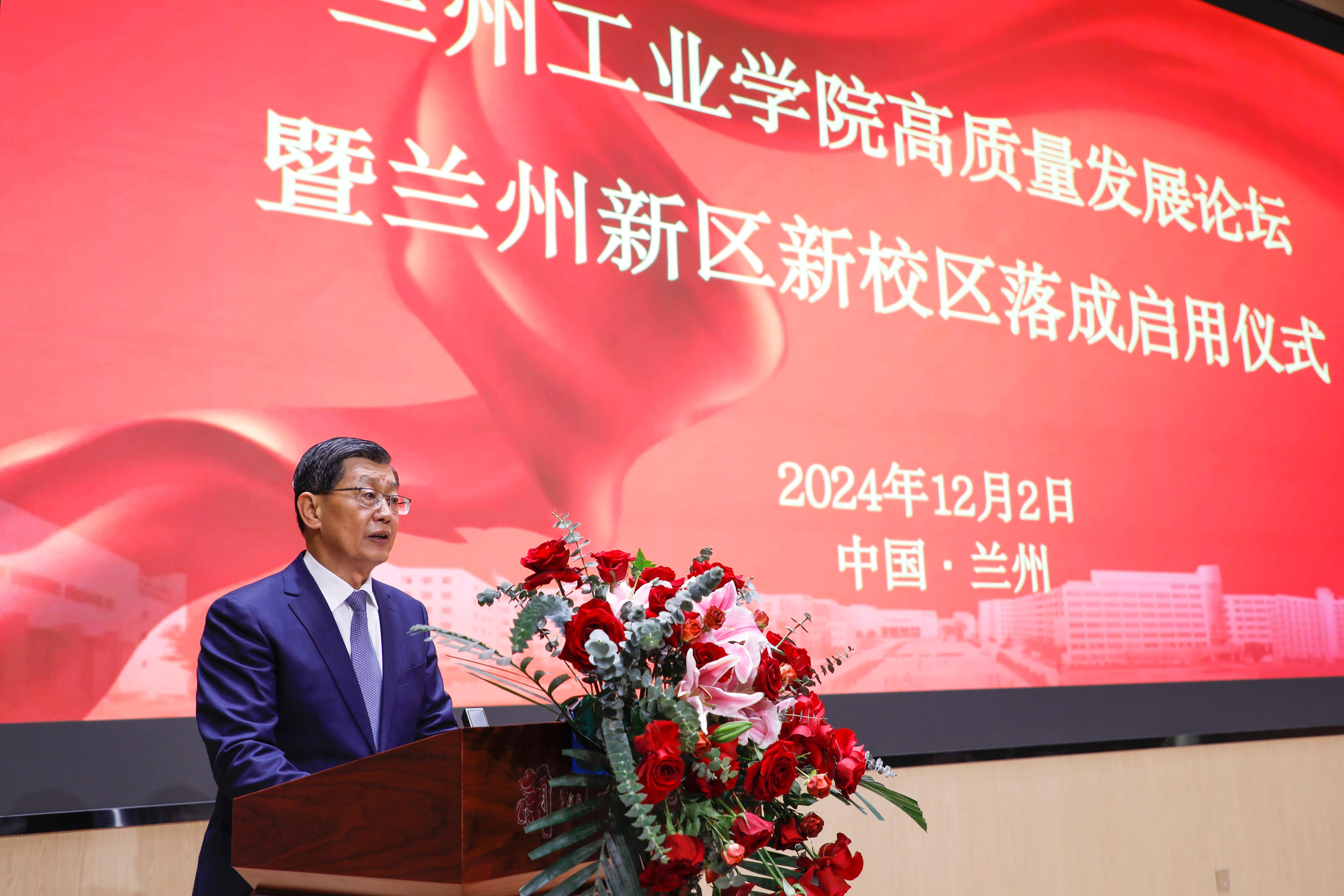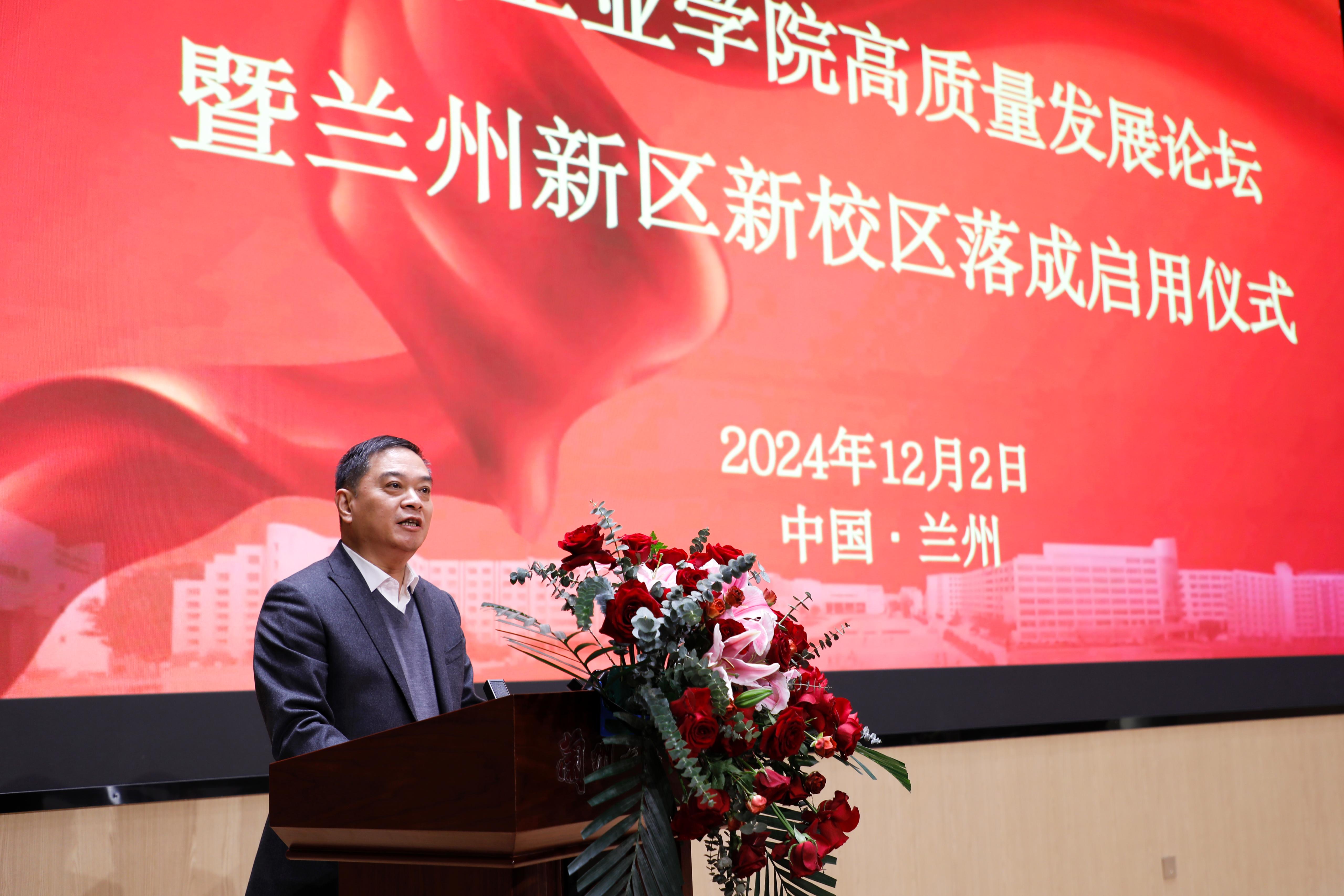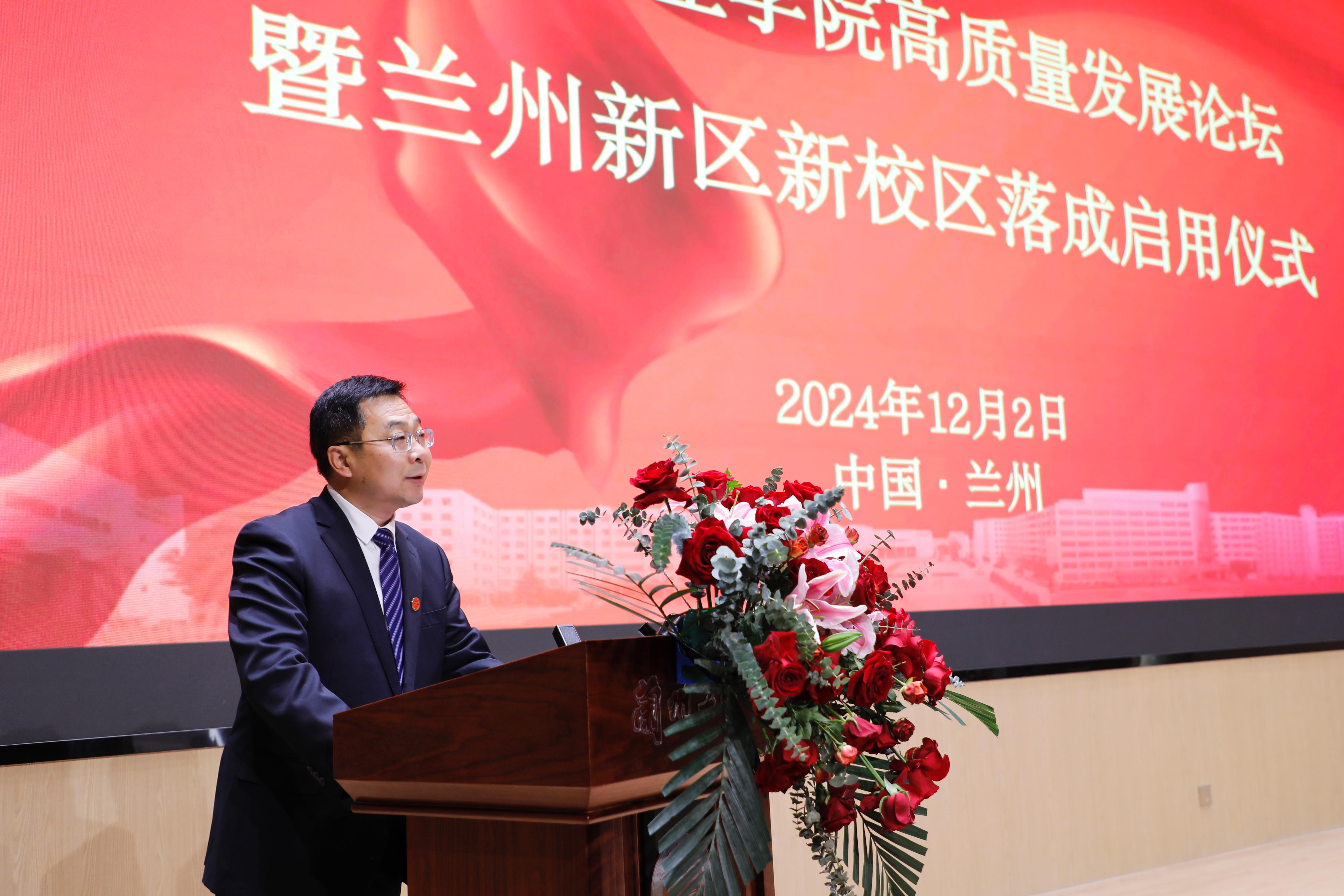 左龙从兰州新区教育事业高质量发展等多个维度对学校兰州新区新校区落成启用给予高度肯定和赞扬。他指出,兰州新区将着眼长远发展,着力推动职业教育产教融合,以政校协同推进专业、产业、就业、创业“四业”联动,大力实施职业教育服务产业发展专项攻坚行动,促推优势产业企业与院校合作开办产业学院、专业订单班,院校、科研院所与龙头企业共建科创中心、孵化中心,以高水平教育支撑经济社会高质量发展。将进一步深化与兰州工业学院的合作交流,强化协同发展,共同书写区校融合崭新篇章。