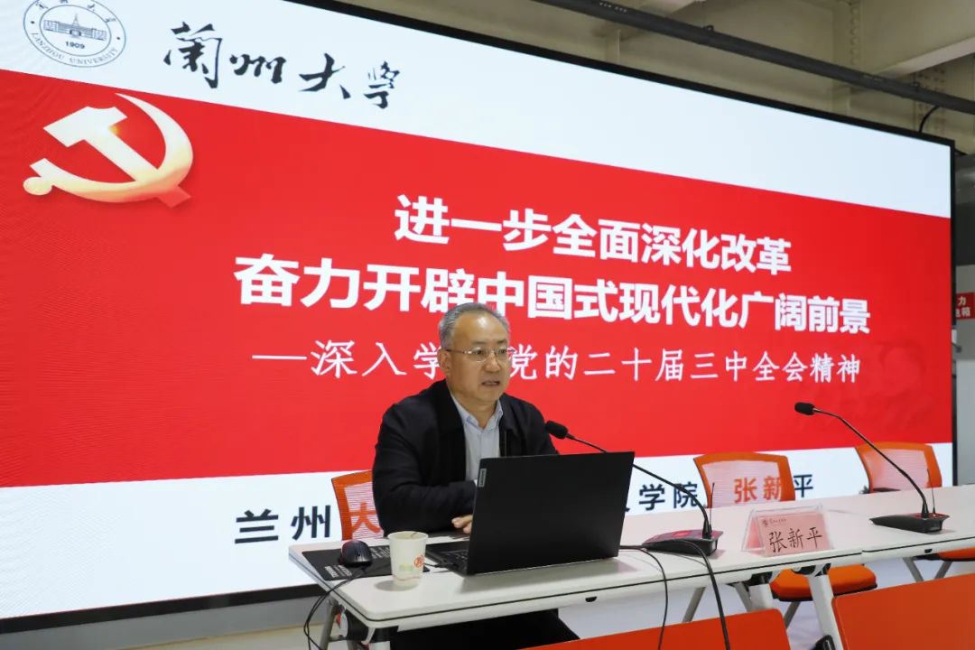 培训期间,甘肃省学习贯彻党的二十届三中全会精神专家学者宣讲团成员、兰州大学马克思主义学院张新平教授,甘肃省学习贯彻党的二十届三中全会精神专家学者宣讲团成员、我校马克思主义学院副院长韩艳慧教授分别以《进一步全面深化改革 奋力开辟中国式现代化广阔前景——深入学习党的二十届三中全会精神》《进一步全面深化改革必须坚持以人民为中心》为题,宣讲了党的二十届三中全会精神。