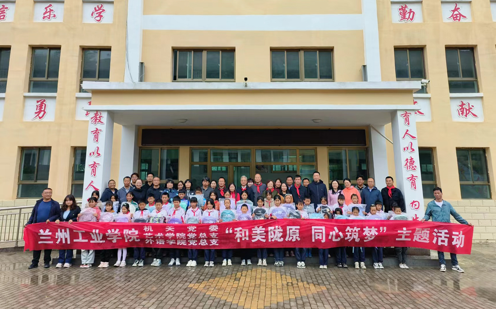 孟夏时节,爱心涌动。5月29日-30日,六一儿童节来临之际,机关党委、艺术设计学院和外国语学院师生满载爱心,走进临夏回族自治州积石山县蔚林小学,开展“童心守护 关爱相伴”——“爱心书包”捐赠活动。党委副书记黄荟铭、党委委员、副校长罗均华、党委委员、统战部部长张红岩出席活动。