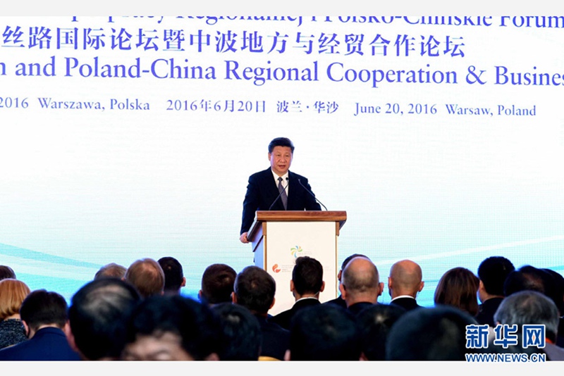 2016年6月20日,国家主席习近平、波兰总统杜达在华沙共同出席丝路国际论坛暨中波地方与经贸合作论坛开幕式。习近平发表题为《携手同心 共创未来》的重要讲话。新华社记者 饶爱民 摄