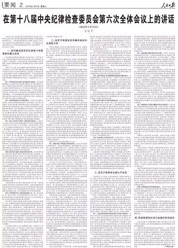 【学习大国按】5月3日,“五一”小长假后第一个工作日,习近平的又一篇讲话全文公开发表——《在第十八届中央纪律检查委员会第六次全体会议上的讲话》,看文章标题就知道这篇讲话的分量。这是2016年1月12日在中央纪委全会上讲的,全文近1.5万字。