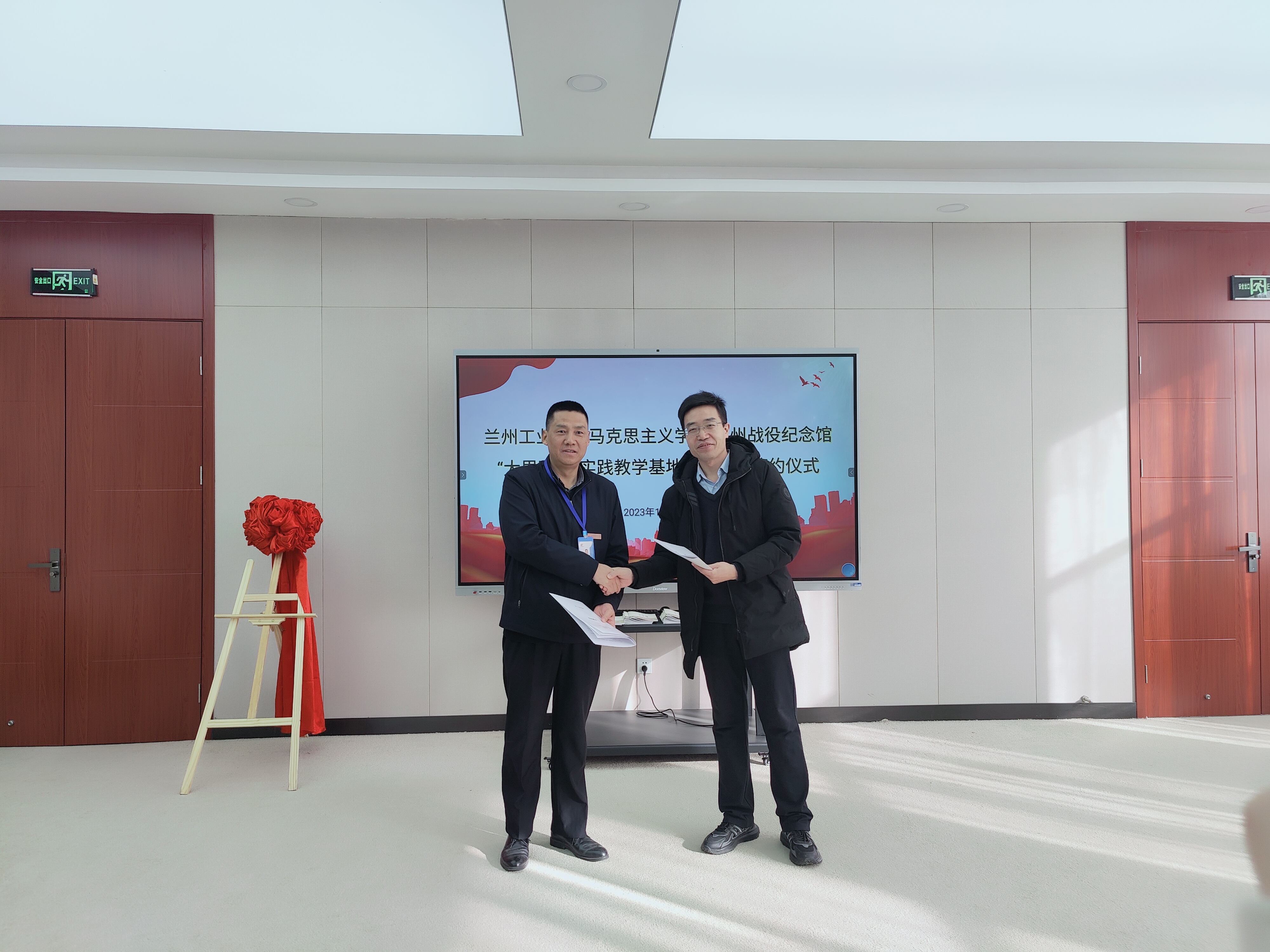 签约仪式上,李永强介绍了纪念馆基本情况。他指出,兰州战役是解放战争中具有重要意义的一场战役,为解放西北奠定了基础,战役中涌现出的英雄人物事迹,是进行爱国主义教育的生动教材。马克思主义学院党总支书记罗柏林向纪念馆对共建实践教学基地的支持表示感谢,希望双方今后在思政课实践教学、红色文化专题讲座等方面与纪念馆开展合作,实现优势互补、资源共享。