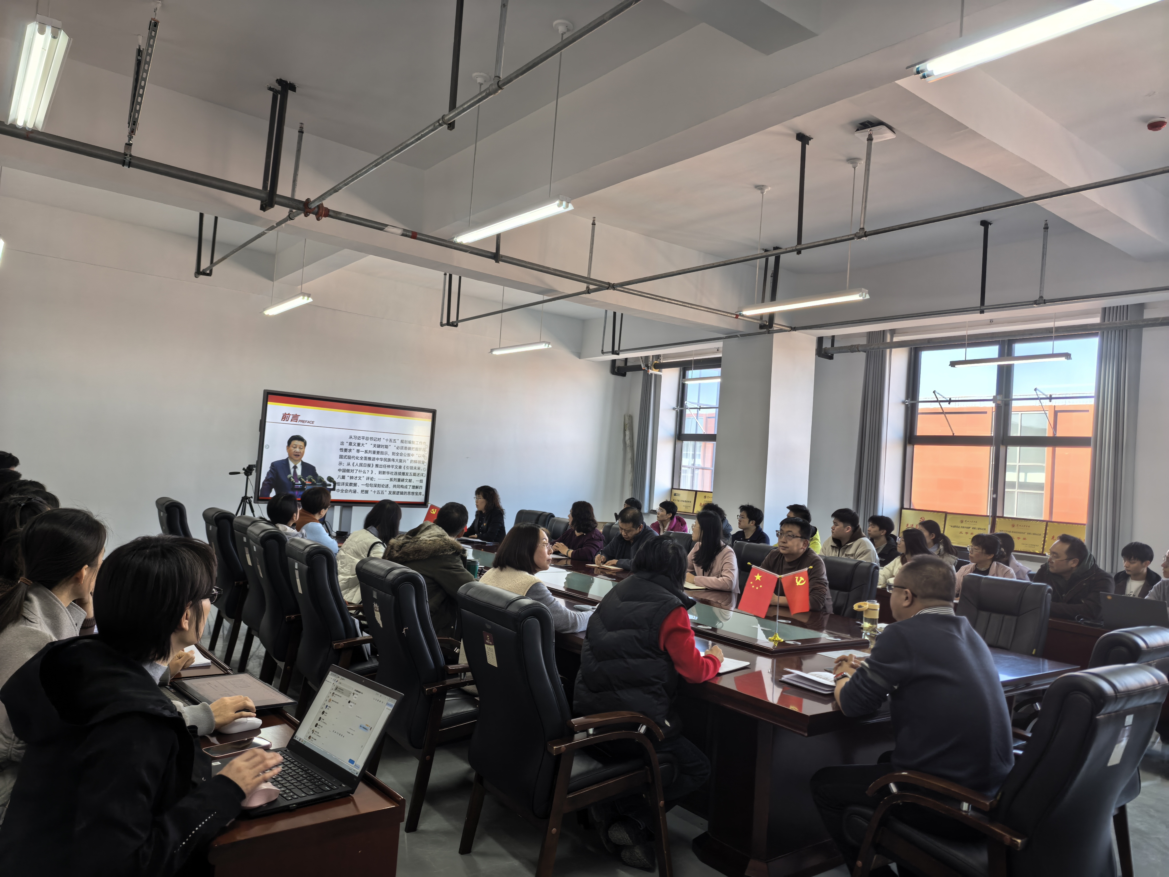 学院全体教师党员、学生党员代表及党外人士参加党课学习。