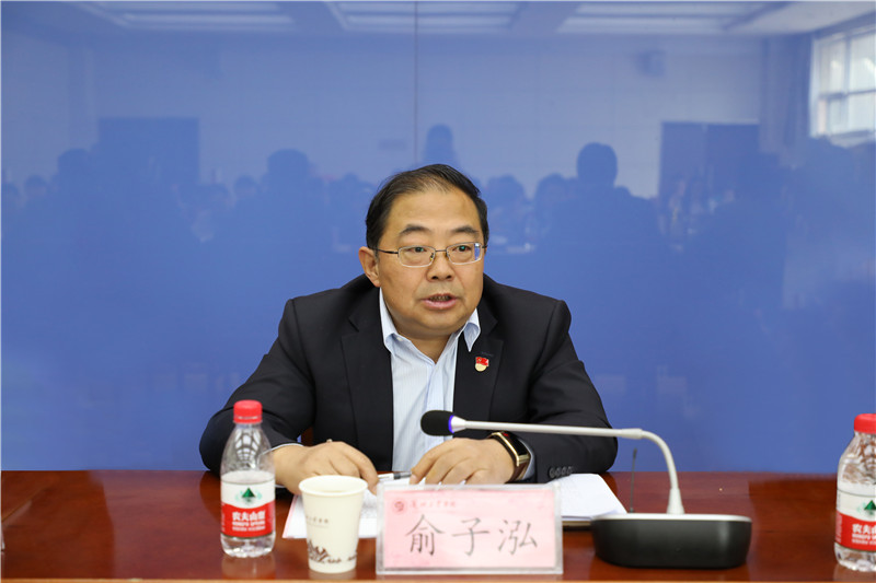 俞子泓强调,要高举"始终坚持社会主义办学方向"这面旗帜,贯彻"全面从严治党"这个要求,抓好校内"第一课堂"、实践活动"第二课堂"、网络媒体"第三课堂"三个课堂,完善政治、思想、组织、机制四项保障,同频共振、形成合力,共同开创全员全方位全过程育人的工作格局。