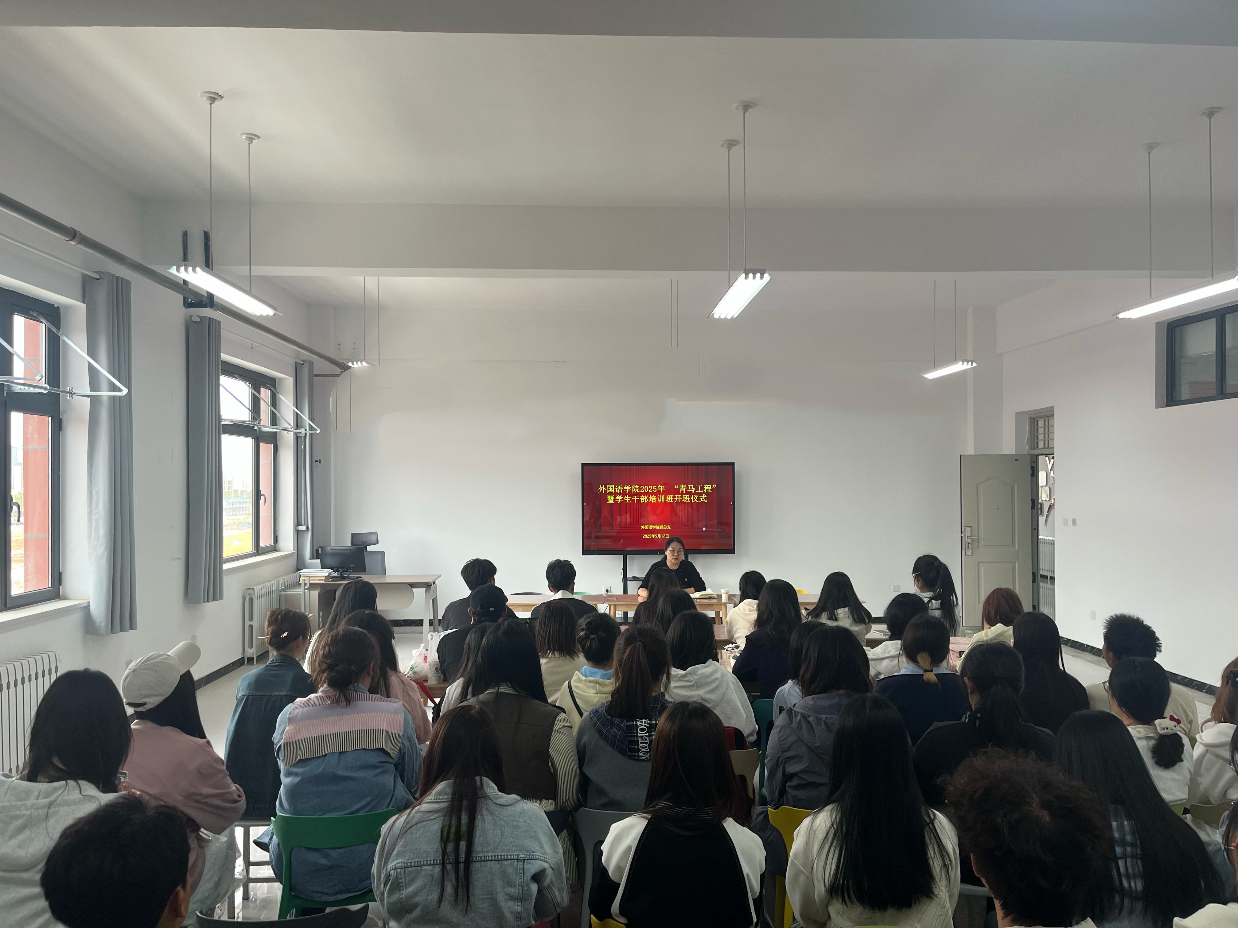 为深入学习宣传贯彻党的二十大精神,全面提升学生党员党性修养和学生干部综合能力,5月12日,外国语学院在文科实训楼A504举办了2025年“青马工程”暨学生干部培训开班仪式。