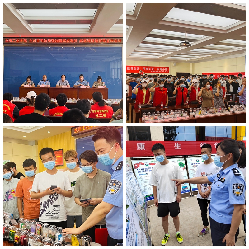 为进一步加强校园禁毒宣传,增强广大师生的安全防范意识和自觉抵制毒品侵袭的能力,筑牢校园禁毒安全墙,6月21日,在“国际禁毒日”来临之际,我校联合兰州市司法局强制隔离戒毒所、龚家湾街道开展了“手拉手远离毒品 心连心造福社会”禁毒宣传进校园活动。