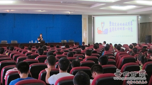 6月初,集中组织了“就业政策与信息”、“女性礼仪与魅力修养”、“大学生求职面试礼仪”等3场就业职场专题讲座。各学院根据毕业生实际情况,先后组织开展了与专业相对应的就业指导讲座共10场次。