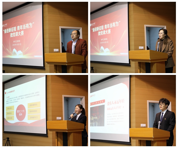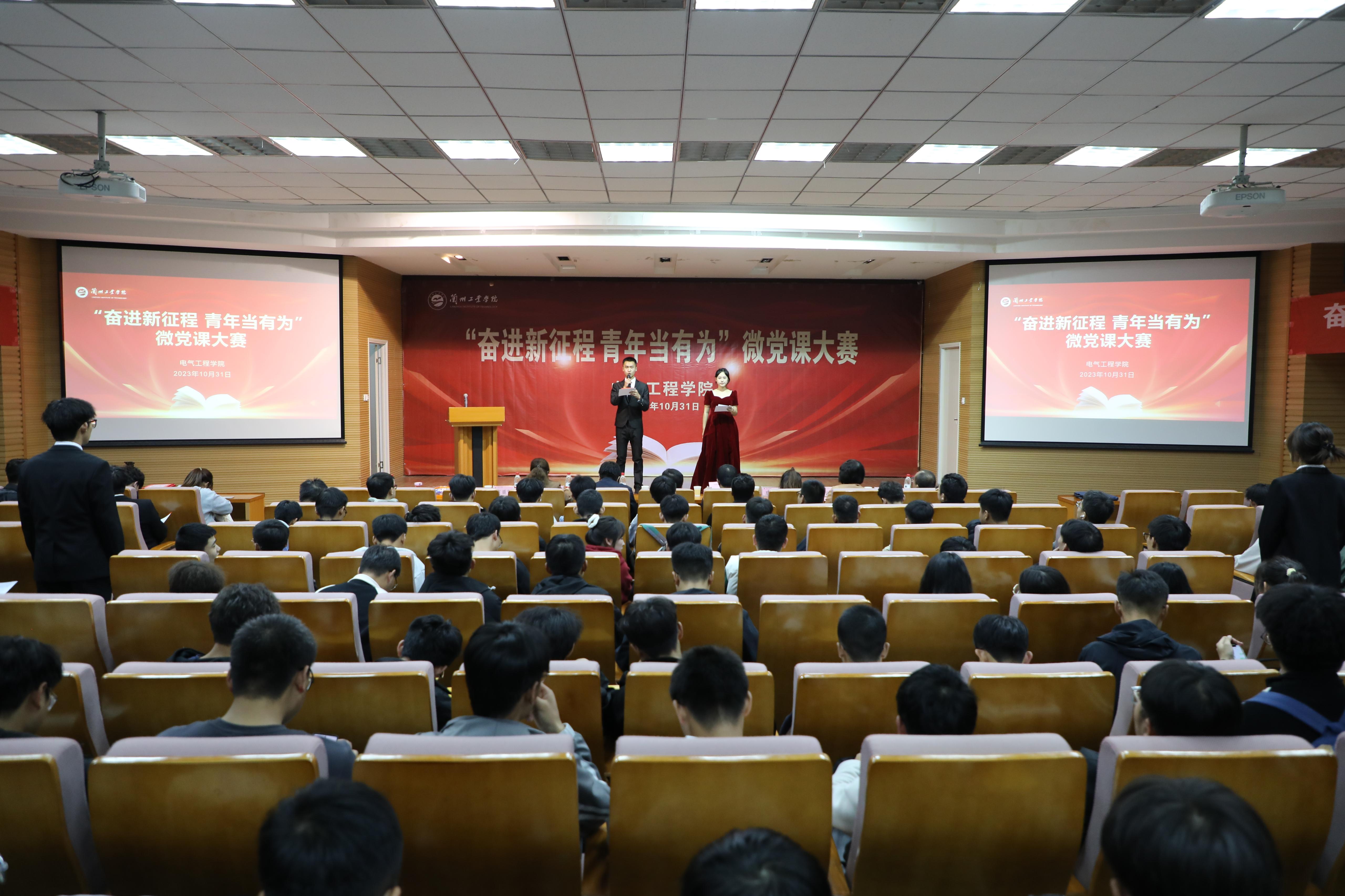 为深入学习贯彻党的二十大精神和习近平新时代中国特色社会主义思想,落实学校“三抓三促”行动,进一步弘扬伟大的建党精神,激励广大学生学好新时代理论、讲好新时代故事,10月31日,电气工程学院在第二学术报告厅举办了“奋进新征程 青年当有为”微党课比赛。党委组织部、党委学工部、就业指导中心、马克思主义学院相关负责人,电气工程学院班子成员、各学生党支部书记及学生代表共320余人观看了此次比赛。