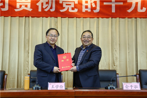 党委书记俞子泓为王学俭教授颁发兼职教授聘书
