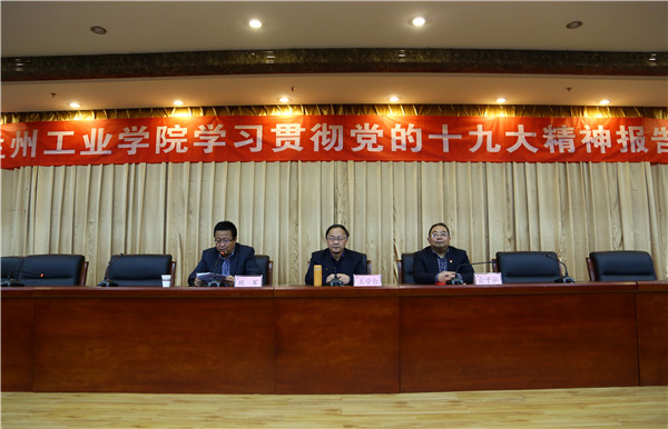 2017年11月14日下午,兰州大学教授王学俭应邀来我校作《不忘初心,牢记使命——深入学习党的“十九大”精神》专题辅导报告。党委书记俞子泓,纪委书记廉志端,总会计师王多兴出席报告会。副校长魏军主持会议。