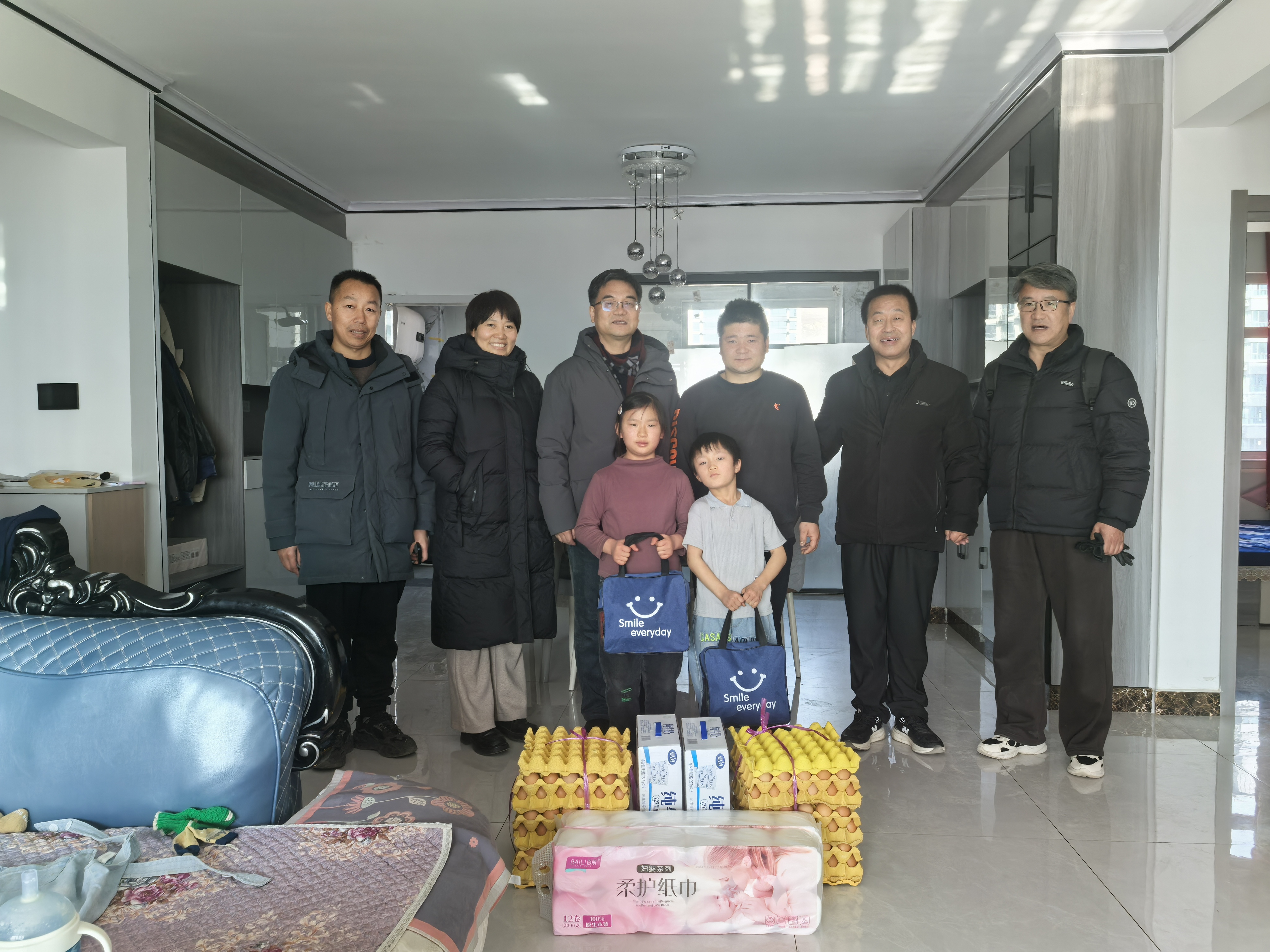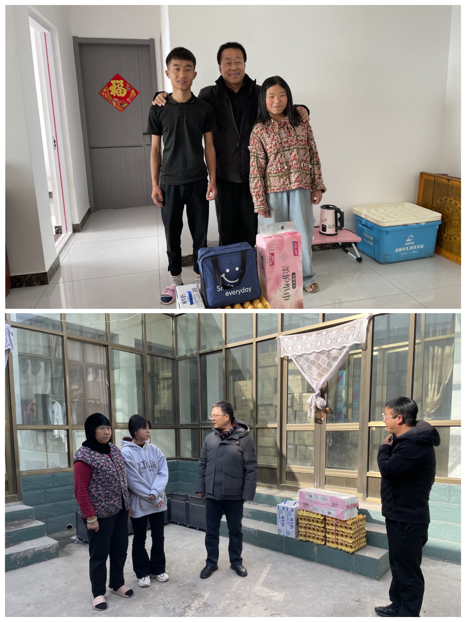 在积石山县胡林家乡、石塬镇和林坪安置点帮扶对象家中,学校结队干部与关爱对象面对面交流谈心,详细了解他们日常生活、学习、健康、家庭及收入支出等情况,并向孤儿、残疾人、失独老人、特困家庭送去了营养品和洗护用品。在马胡塞尼家的楼房,帮扶干部详细询问了楼房入住、政策补贴、供暖、物业、种植养殖、务工、年货准备等情况及生产生活存在的问题,鼓励监护人克服困难,努力奋斗,过幸福美好生活。在杨占祥、马撒利海、白志雄等家里,结队干部和孩子们拉起了家常,详细了解孩子们在生活和学习中存在的困难,勉励他们树立自尊、自爱、自立、自强和奋发向上的精神,成为社会有用之才,以优异的成绩回馈社会,报效国家。