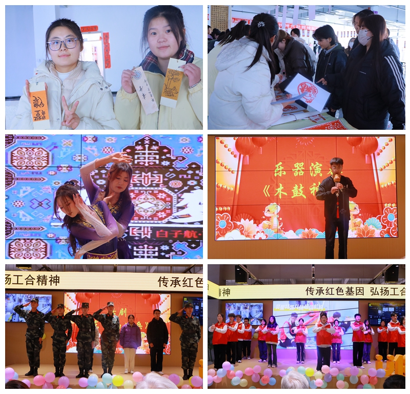 舞狮《金元宝》,拉开了元旦晚会的序幕。歌舞节目轮番上演,轻快旋律让观众沉浸其中,独唱《彩色的黑》《至少还有你》,青春的律动与工院的记忆,皆藏在歌词里。舞蹈《疆梦》展示着青春的风采,绚烂的舞姿混合着青春的气息。武术《双雄会》刚健有力,展现了同学们的多才多艺。葫芦丝独奏《木鼓神韵》余音绕梁,小品《东西南北兵》令人捧腹大笑又展现了家国情怀……在书画展、互动游戏环节等,展示了包括剪纸、书画等多种形式的作品,主题丰富多样,“快速问答”“你画我猜”“水果蹲”“抢水瓶”等游戏吸引了众多学生参与,现场气氛热烈。