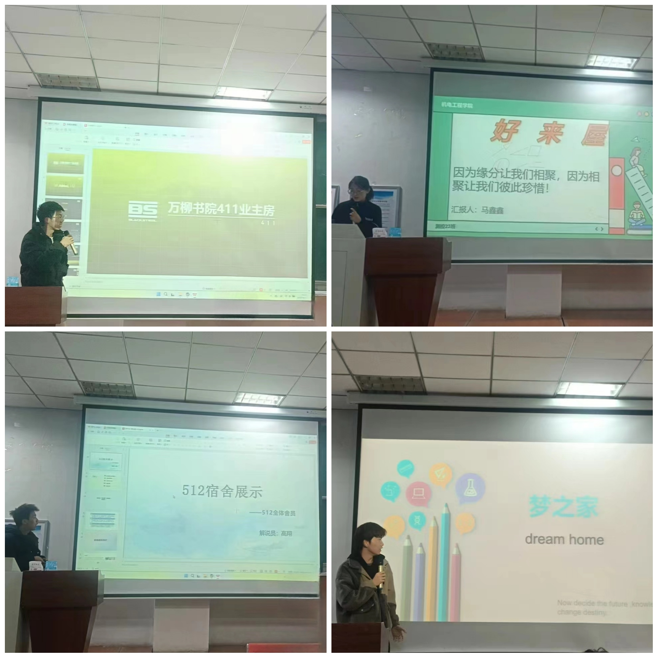 本次比赛面向机电工程学院2023级全体新生。共有40间宿舍近320余名学生报名参加,经过初赛和复赛的层层选拔,最终有20间优秀宿舍入围决赛。决赛包含PPT汇报、风采展示、才艺展示环节,各参赛宿舍代表流利自信地展示出积极向上的宿舍文化风貌、协力互助的寝室学风、精彩纷呈的寝室活动,充分体现了宿舍成员们的凝聚力、归属感以及“温馨、和谐、文明、安全”的宿舍文化氛围。最后,评委评出一等奖、二等奖、三等奖并给予奖励。