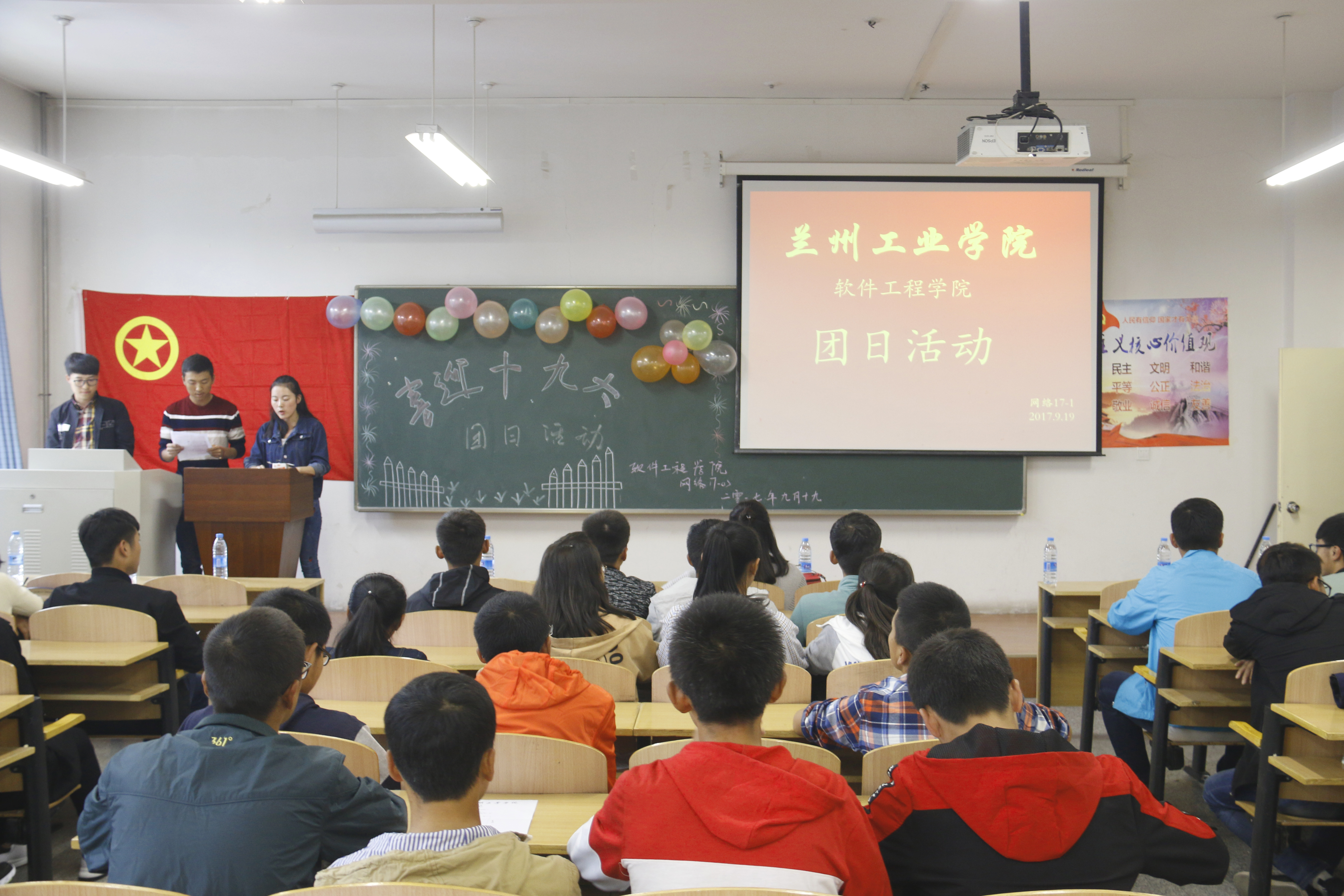 为了深入学习习近平总书记扎根黄土地矢志奋斗的感人经历和不忘初心爱国为民的情怀,引导广大师生学习青年习近平的崇高精神和优秀品格,深化习近平总书记系列重要讲话精神的学习贯彻,推进习近平总书记治国理政新理念新思想新战略进头脑, 9月19日下午,全校69个新生团支部集中开展了“学习青年习近平,扎根陇原黄土地,用青春梦托起中国梦”主题团日活动,南北校区的教学楼里团旗飘飘、团歌嘹亮、掌声阵阵。