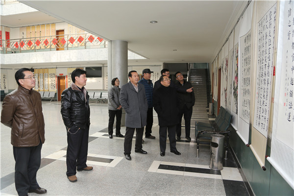 1月3日上午,学校迎新春书画展在职工之家开展。党委书记俞子泓,校长王华栋,副校长冯彪、魏军,纪委书记廉志端,党委委员、总会计师王多兴,校长助理雷在福亲临现场观摩指导。 本次展览共征集到200 余幅作品,其中包括隶、行、草及山水、花鸟等书画作品。展览主题突出,内容丰富,题材广泛,风格多样,艺术气息浓厚。学校广大书画爱好者积极参与、精心书写,展示了学校广大书画爱好者高雅的精神风貌和对生活的热爱、对新年的祝福,抒发了爱党、爱祖国、爱学校的真挚情感。