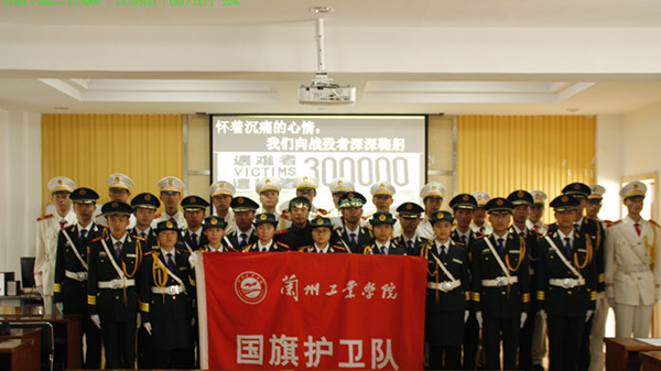 在国家公祭日来临之际,学校国旗护卫队在大学生活动中心五楼及北校区校园内举办了“以史为鉴、面向未来、铭记历史、勿忘国耻”纪念南京大屠杀78周年活动。